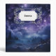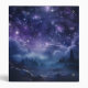 Forêt mystique avec un espace violet foncé orné d'étoiles. Une danse harmonieuse de la nature et de la merveille cosmique.
