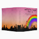Joli noir, corail orange et rose chaud arrière - plan, avec arc-en-ciel coloré et silhouette d'horizon du centre-ville avec un troupeau d'oiseaux qui volent et de mignons doodles. Cet article est disponible sous forme de collection complète comprenant des invitations, Magnets, Stickers, cartes de visite, Classeurs et plus !