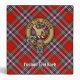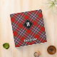 Tartan rouge MacFarlane. Motif arrière - plan sans couture. Texte avant personnalisé et monogramme. Arête et texte arrière personnalisés. Cimetière de clan à l'arrière.