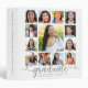 Faites en sorte que votre diplômé favori soit fier, se réjouisse et mette en valeur son étape importante avec cet album de souvenirs personnalisé de fin d'études secondaires, un collage photo K – 12, féminin, époustouflant, simple et moderne. Un visuel amusant et ludique avec une écriture manuscrite grise douce et des cœurs mignons et ludiques, ainsi que son nom, son année de promotion et 13 photos de votre choix, sur un fond blanc. Un lettrage gris clair sur le dos et une icône de bonnet de diplômé gris clair sur le verso sur fond blanc. Des affiches, des plaques, des couvertures, des bannières et d'autres cadeaux de fin d'études assortis sont également disponibles dans cette collection tendance et élégante. Garantit la préservation des souvenirs chéris de cette occasion spéciale !