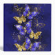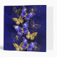 Composition des luxueux papillons saphir et bijoux en or sur arrière - plan bleu texturé.