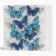 Vertical composition of réalistes, blue and white morpho butterflies on gray textured background. Morphine bleu.