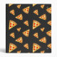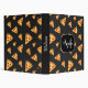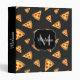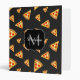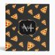 Personnalisez le classeur unique avec votre nom et votre initiale. tranches de pizza cool et amusantes motif sur gris foncé. Pizza juteuse à croûte croquante, fromage, salami, champignons champignon, olives et une saupoudrée d'origan.