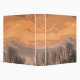 Ce beau classeur contemporain décoratif comporte une conception abstraite impressionniste des arbres silhouettés par noir nu et d'un ciel de coucher du soleil avec des nuages baignés dans orange, saumoné, l'or, le brun, le mauve et le pourpre. Les enveloppes d'image de l'avant au dos.