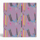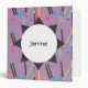 Arrière - plan pourpre avec un motif des crayons, des crayons colorés, stylos d'inscription et plus. L'avant a un cercle blanc avec une frontière des triangles. Texte personnalisable