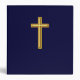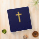 Croix chrétienne d'or simple sur l'arrière - plan blanc ou bleu-foncé