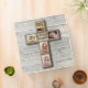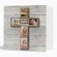 Illustration de la Première Sainte Communion moderne avec croix en bois avec des images de communion épinglée sur un arrière - plan rustique. Il est facile de modifier les 3 échantillons de photos du communicant avec vos propres photos pour personnaliser le produit.