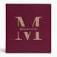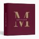Personalized Modern Burgundy Gold Monogram Office School 3 ring binder