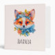 Un classeur avec l'illustration d'un adorable portrait de renard avec une couronne et un collier bleu et orange.