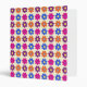 Retro style pattern of blue, pink, purple and orange penny flowers.