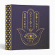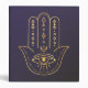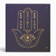 Classeur Hamsa sacrée violet et or avec épine à motifs or décoratif. La Main Hamsa est un "Signe Universel de Protection". La main de Hamsa est universellement connue pour unir le bien, dissiper le mal, apporter une énergie positive, et contrecarrer les énergies négatives. Mesures classeurs 1" W.