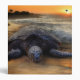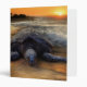 Tortue de mer sur la plage au coucher du soleil. Oahu Hawaï 2009.