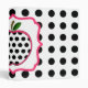 Un classeur avec une conception noire de point de polka sur l'avant, le dos, et l'épine. Parties roses surdimensionnées de couvertures de cadre de parenthèse d'avant, de dos, et d'épine. Pomme de point de polka à l'intérieur de cadre.