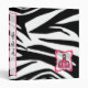 Un classeur avec une conception d'impression de zèbre sur l'avant, le dos, et l'épine. Logo rose d'école à l'intérieur de cadre de fantaisie avec l'arrière - plan pur à l'avant en bas à droite. Ajoutez votre propre texte à l'épine. Pour changer la taille des textes, le style, la couleur, ou la position, cliquent sur juste la "personnaliser il !"