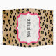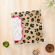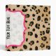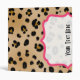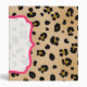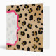 Un classeur comportant un fond d'image d'empreinte de léopard couvrant la surface extérieure entière. Le cadre rose de parenthèse avec le centre pur couvre des parties d'avant, de dos, et d'épine. Personnalisez avec votre nom ou tout autre texte de votre choix sur l'épine.