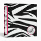 Un classeur avec une conception d'impression de zèbre sur l'avant, le dos, et l'épine. Ajoutez votre vue formée par cercle de rose d'intérieur d'initiale avec l'arrière - plan pur à l'avant en bas à droite. Ajoutez votre propre texte à l'épine. Pour changer la taille des textes, le style, la couleur, ou la position, cliquent sur juste la "personnaliser il !"