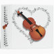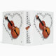 Cette image présente un graphique de violon contre un coeur en forme de notes musicales. L'image est à la fois à l'avant et à l'arrière. La section bindée a une rangée de notes musicales et un violon au centre. Parfait pour les mélomanes ou les violonistes. Super de tenir votre partition !