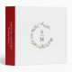 Ce classeur de planification mariage à 3 anneaux personnalisé dispose de votre monogramme encerclé par des plantes. Utilisez les champs modèle pour ajouter votre personnalisation en blanc sur un arrière - plan rouge. Art et design uniques de Victoria Grigaliunas. Pour voir les articles de papeterie mariages correspondants comme cette visite www.zazzle.com/dotellabelle