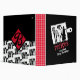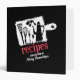 Une fabuleuse planche à découper en noir et blanc avec des ustensiles de cuisine, et un carnet ou un classeur de livre de recettes en plaid rouge pour les chefs de la hanche qui aiment faire une déclaration. La planche à découper a des bords rugueux, avec le fouet, la fourchette, les cuillères de mesure et l'huile d'olive peut silhouettes et une grande "recettes" en plaid rouge. Vous pouvez customiser la colonne vertébrale et le nom sur le devant.