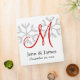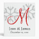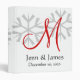 Classeur de souvenir de mariage d'hiver avec les flocons de neige gris, initiale rouge de monogramme, texte noir pour les noms de jeunes mariés. Elke Clarke© personnalisent avec votre texte ou changent la conception ou l'arrière - plan.