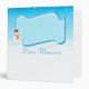 Winter Memories - album photo famille. Un design entièrement personnalisable avec un arrière - plan d'hiver bleu enneigé avec un bonhomme de neige heureux, et un cadre sur la couverture avant où vous pouvez ajouter votre photo.