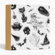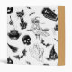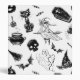 Objets d'Halloween dessinés sur papier, puis tracés dans Illustrator pour créer motif.