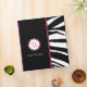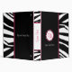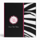 Un classeur élégant comportant un arrière - plan principal noir. Conception d'impression de zèbre des côtés d'avant et de dos, aussi bien que sur le dessus et le bas de l'épine. Équilibre de roses indien. La conception avant de caractéristiques se composant d'un cercle a formé le cadre d'impression de zèbre avec l'équilibre rose. Ajoutez votre initiale à l'intérieur de cadre. Customisez le texte sur l'avant, le dos, et l'épine.