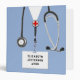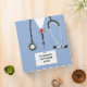Conception médicale unique avec un uniforme de travail d'infirmière de l'hôpital bleu et un stéthoscope. Modifiez le texte pour ajouter le nom et les références de l'infirmière.