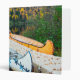 Cette photo comporte les grands canoës appelés rabaska qui sont amarrés à un dock flottant sur le rivage de la rivière de Jacques-Cartier, parc national de Jacques Cartier (Stoneham-et-Tewkesbury, Capitale-Nationale, Québec, Canada).