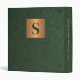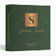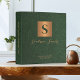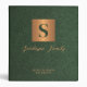 Luxe moderne élégant monogramme initial et nom de famille signature style personnalisé planification successorale confiance documents de portefeuille classeur avec un faux carré en or métallique en cuivre avec lettre initiale et votre texte personnalisé sur un arrière - plan en cuir vert émeraude foncé comme (TEXTURE IMPRIMÉE).