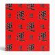 Ce dossier est décoré du caractère de kanji pour la chance dans le noir et décrit dans le blanc sur un fond rouge pour bien plus de chance.