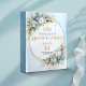 Celebra un momento inolvidable con este álbum de recuerdos personalizado para Quinceañera / 15 años, diseñado en un delicado estilo boho o bohemio. La combinación de tonos azul polvo, azul pastel y azul claro, junto con flores suaves, eucalipto y follaje verde, crea una estética elegante y moderna, realzada con detalles en dorado que aportan un toque de lujo y distinción.