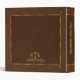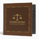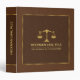Image en cuir vintage brun simple avec une illustration du logo de la justice dans les tons or. Cadre or simple. D'autres logos de justice sont disponibles. Remplacez le logo actuel par le vôtre ou conservez-le tel quel. Texte personnalisable sur l'avant, le dos et la colonne vertébrale dans les tons or correspondants de l'échelle.