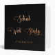 Un arrière - plan noir chic. Personnalisez et ajoutez un nom. Texte en or rose : École, travail, étude Spine : ajouter un texte.