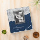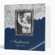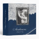 Arrière - plan de soie bleu classique avec dentelle blanche numérique en haut, perles blanches accentue le coin inférieur droit. Un cadre orné noir et argent entoure votre photo. Le nom, la date et le texte de la colonne vertébrale sont également des modèles créés pour vous. Cette conception peut également être pour des anniversaires.