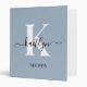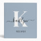 Cette simple et poussiéreuse bleu vert 1" de capacité Recette 3 anneau classeur avec votre prénom dans une police de script tendance en noir et votre première initiale dans une police casquette moderne en blanc est parfait pour garder vos recettes propres et rangées. C'est design, tendance et pourtant très classique.