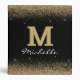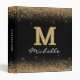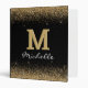 Classeur monogramme personnalisé 3 anneau avec un arrière - plan noir qui peut être changé à n'importe quelle couleur, une couche de cascade élégante parties scintillant or, votre initiale, et le nom dans une élégante police de caractères.