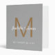 Classeur Élégant Monogramme or Script Wedding planner gris