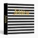 Vous pouvez customiser votre classeur avec un nom ou un autre libellé dans un faux script d'or sur un motif rayé noir et blanc. Le dos est également rayé. Vous pouvez également customiser la colonne noire du classeur avec le nom du destinataire ou tout autre texte souhaité.