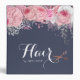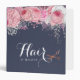 Design classeur moderne et élégant pour coiffeurs avec ciseaux d'or rose en faux cuivre, roses roses et blanches et police calligraphie élégante.