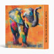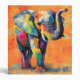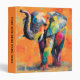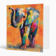 Un éléphant joyeux avec son tronc surélevé, éclatant de couleurs arc-en-ciel qui apporte bonheur, énergie positive, et un esprit ludique.