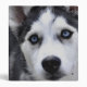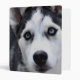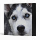 Le bleu a observé le chiot de chien de traîneau sibérien avec un visage doux.
