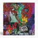 Découvrez ce graffiti de personnage Diablo avec une flamme à la main, sur un arrière - plan de mortels, de crânes et de sang.