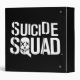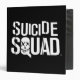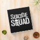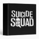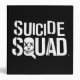 Logo Black and White Suicide Squad avec un crâne dans la lettre Q. Lettres blanches sur arrière - plan noir.