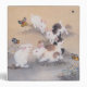 Les lapins sautent sur l'herbe, jouant avec des papillons de danse. Les divers lapins sauvages avec ou sans les taches noires ou brunes sautent à cloche-pied dans les tonalités de sol-brun, montrant l'intimité des animaux et de la nature. Les papillons avec de bonnes couleurs et fleurs bleu ciel forment l'image un paysage plus lumineux et plus vif.