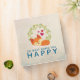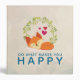 Un classeur avec un dessin animé d'un mignon renard orange dormant tranquillement avec un petit coeur rose et rouge. Un feuillage vert se trouvait derrière. Le texte dit : "Faites ce qui vous rend heureux". Arrière - plan de couleur crème rustique avec un motif de tendance aux formes géométriques sobres.