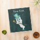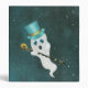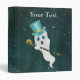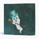 Ce classeur à trois anneaux a un fantôme blanc flottant dans un ciel nocturne foncé avec des étoiles blanches tenant une canne noire et or avec un crâne et portant un chapeau de dessus bleu fantaisie. Customisez votre texte sur le devant avec les modèles.