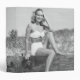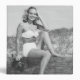 Bikini de port de femme se reposant sur la plage d'ouverture, (B&W), (portrait) marques de | George | AssetID : 57416977