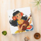 Bande dessinée vintage mignonne d'une fille d'une chevelure noire dans la jupe d'herbe jouant une ukulélé.
