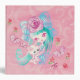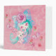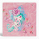 Une peinture originale d'imaginaire en acryliques autorisés : "Amour de chaton". Un mignon, fille de kawaii, avec de longs cheveux lumineux de turquoise, s'est habillé avec un grand arc bleu avec un arc rose au centre, étreint un chaton blanc adorable. L'arrière - plan rose est décoré de petits roses rouges et de papillons sensibles de lavande.
